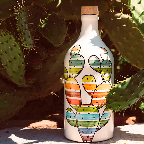 Яркие тона и матовые цвета персонализируют и оживляют осьминогов, кальмаров, рыб, порхающих по белой керамике, или яркие, знаковые символы, такие как наши опунции. Инжир из Апулии с радугой внутри.